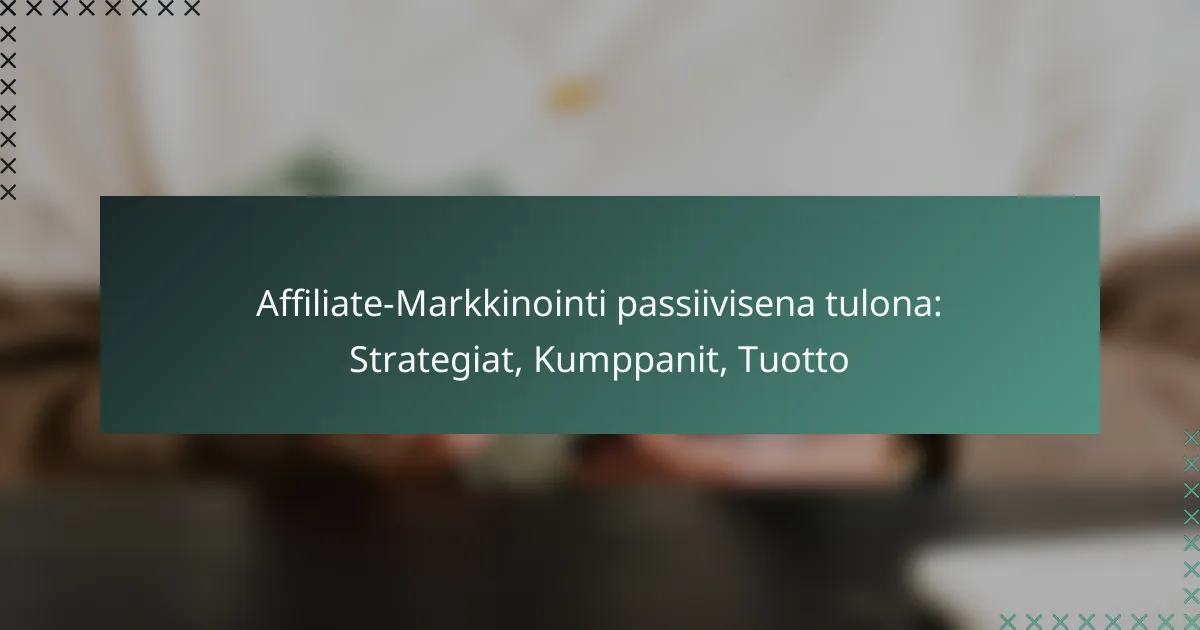 Affiliate-Markkinointi passiivisena tulona: Strategiat, Kumppanit, Tuotto