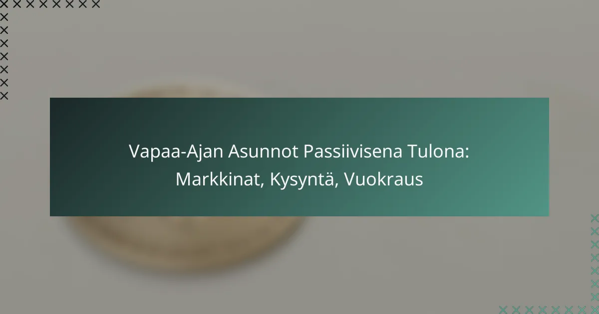 Vapaa-ajan asuntojen markkinat tarjoavat erinomaisen mahdollisuuden ansaita passiivista tuloa vuokraamalla kiinteistöjä loma-aikoina. Kysyntä on kasvanut, ja sijoittajat etsivät yhä enemmän mahdollisuuksia, jotka tarjoavat taloudellista tuottoa ja henkilökohtaista käyttöä. Tehokas vuokrausstrategia on avainasemassa, jotta voidaan maksimoida vuokratulot ja ylläpitää asiakassuhteita. Mitkä ovat vapaa-ajan asuntojen markkinat passiivisena tulona? Vapaa-ajan asuntojen markkinat tarjoavat mahdollisuuden ansaita passiivista tuloa vuokraamalla kiinteistöjä loma-aikoina. Kysyntä on kasvanut viime vuosina, ja sijoittajat etsivät yhä enemmän mahdollisuuksia, jotka tarjoavat sekä taloudellista tuottoa että henkilökohtaista käyttöä. Nykyiset markkinatrendit ja kehityssuunnat…