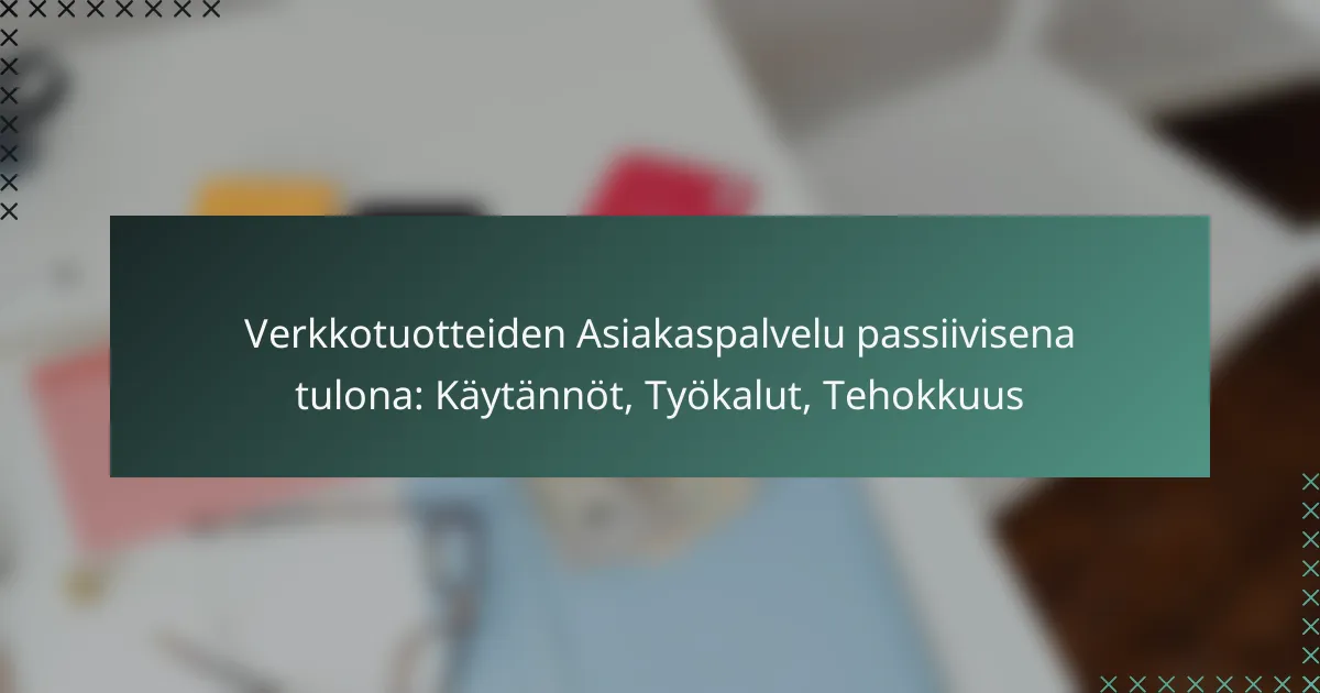 Verkkotuotteiden asiakaspalvelu voi toimia passiivisena tulonlähteenä hyödyntämällä automatisoituja järjestelmiä ja itsepalveluvaihtoehtoja, jotka vähentävät jatkuvaa työpanosta. Tehokkuuden ja asiakaskokemuksen parantamiseksi on tärkeää omaksua parhaat käytännöt, kuten prosessien optimointi ja jatkuva kehittäminen. Käytettävät työkalut, kuten asiakashallintajärjestelmät ja chatbotit, tukevat tätä automaatiota ja parantavat asiakaspalvelun laatua. Mitkä ovat verkkotuotteiden asiakaspalvelun passiivisen tulon mallit? Verkkotuotteiden asiakaspalvelun passiivisen tulon mallit perustuvat asiakastuen tarjoamiseen, joka ei vaadi jatkuvaa aktiivista osallistumista. Tällaiset mallit voivat sisältää automatisoituja järjestelmiä ja itsepalveluvaihtoehtoja, jotka mahdollistavat tulon kertymisen ilman jatkuvaa työpanosta. Passiivisen…