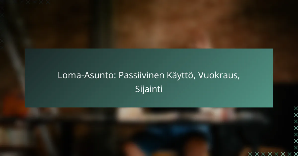 Omakotitalon passiivinen vuokraus tarjoaa sijoittajille mahdollisuuden saada vakaata tuloa ilman suurta hallintoa. Huolellinen talon valinta ja ymmärrys paikallisista markkinoista ovat avainasemassa kannattavan investoinnin varmistamiseksi. Ylläpidon merkitys korostuu, sillä säännölliset tarkastukset ja huoltoauttavat säilyttämään kiinteistön arvon ja turvallisuuden pitkällä aikavälillä.
